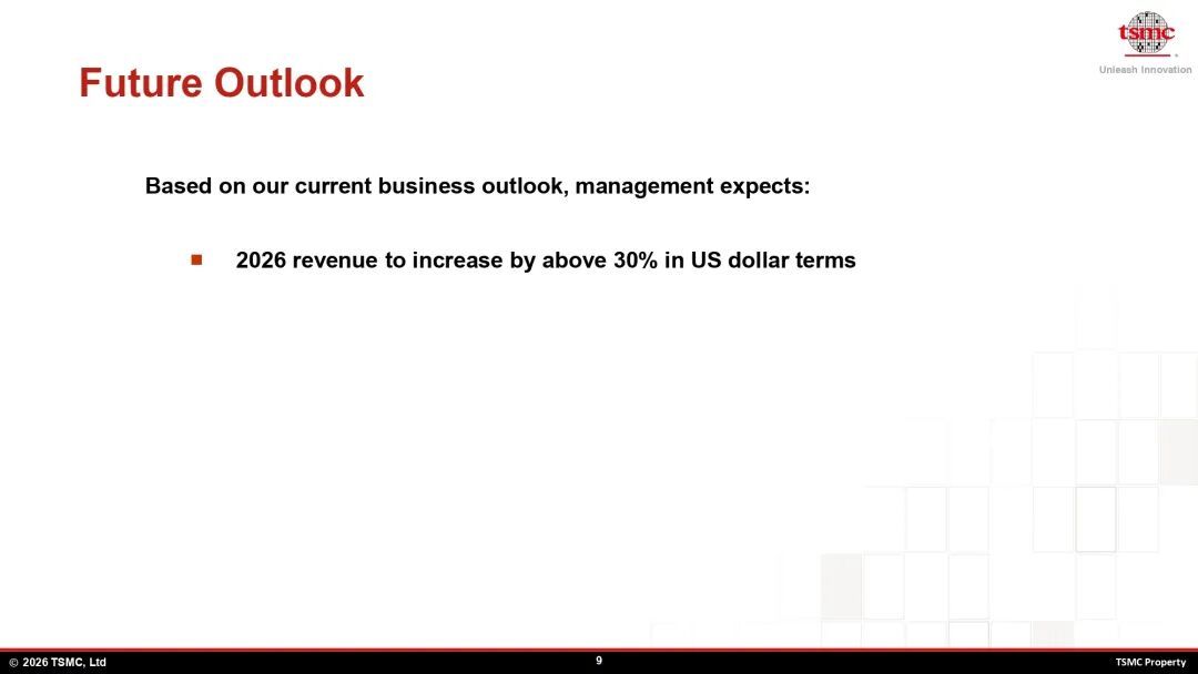 该公司预计全年营收将增长超过30%。台积电预计其资本支出(包括光刻机等大宗采购)将达到1月份公布的520亿美元至560亿美元区间的高端。