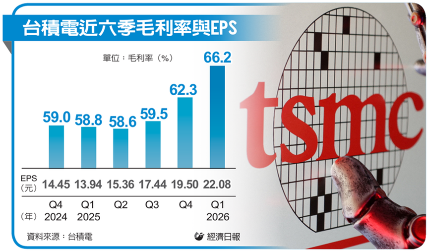 台积电上季财报写下营收、税后纯益、每股纯益、毛利率、营益率等「五个新高」,获利表现再度「好到破表」,尤其「双率」均超越财测预期,法人圈惊艳。