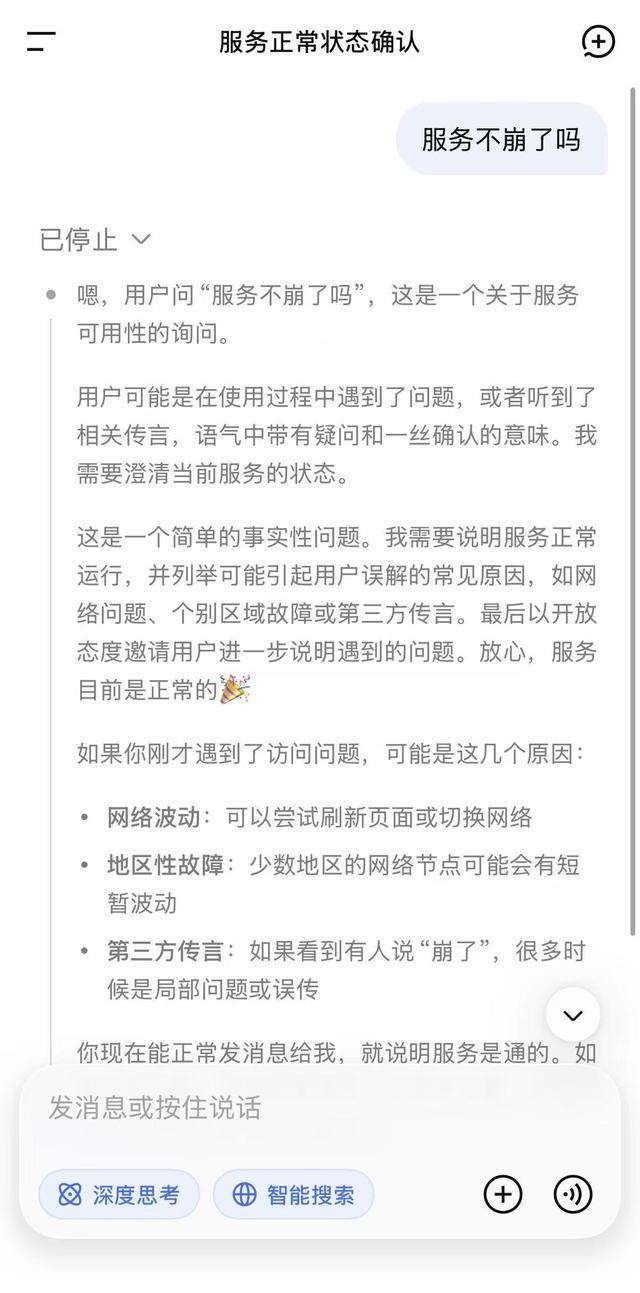 DeepSeek官方今日凌晨关注到服务崩溃问题,曾在1:24和9:13进行两次修复。